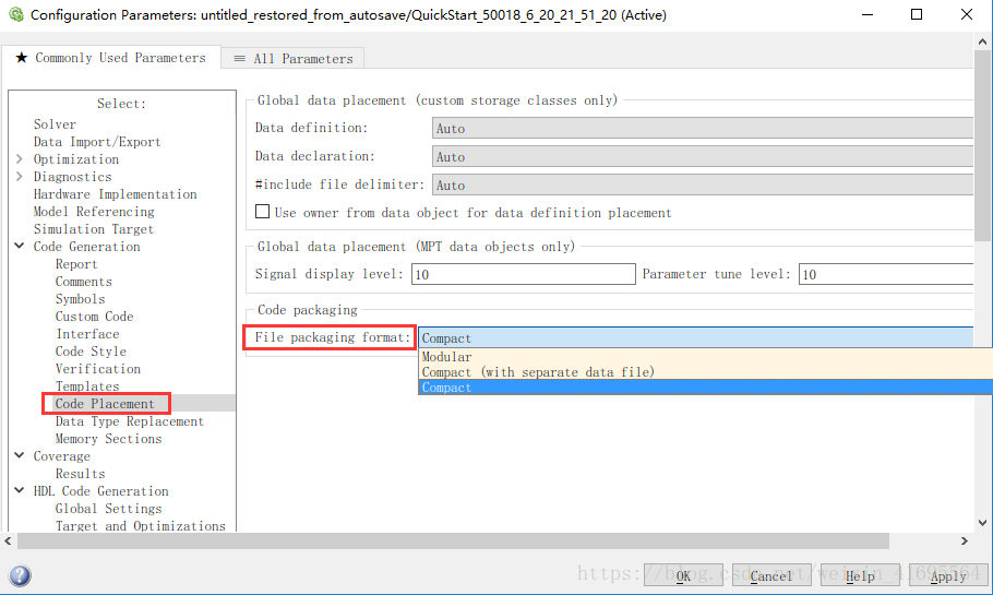 Software Envirionment 组的参数中提供 CPL(Code Placement Library)的选择,CPL 中 定义一个表,根据表格将Simulink模块与所对应目标语言的数学函数及操作函数库挂接,以便从模型生成代码。Embedded Coder提供默认的CPL。