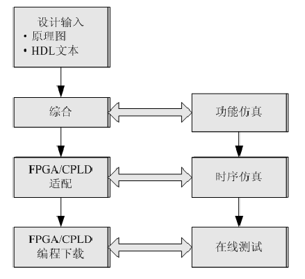 基于可编程逻辑器件的EDA工具应包括:输入工具(原理图输入,HDL文本输入,波形输入)、编译器、仿真器(功能仿真,时序仿真)、综合器(自然语言综合,行为综合,逻辑综合)、适配器(布局布线)和下载器。