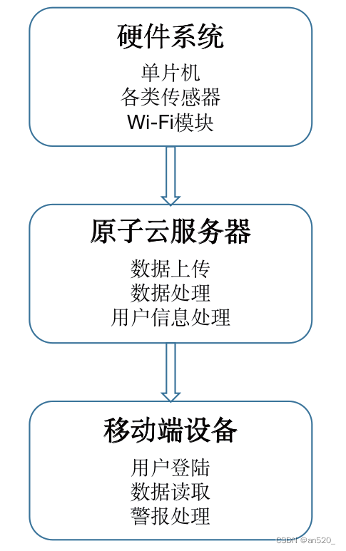 系统软件设计流程复杂,涉及面广,包括数据硬件软件、原子云服务器设计、移动终端硬件设计,这是首次推出各传感器模块采集环境信息和监控控制系统名称信息。通过端口发送,服务器接收对设备的控制。指令过程中,可将数据通过网络传输至界面屏,通过无线通讯、数据采集、发送、发送等方式读取数据,进而实现报警作用。