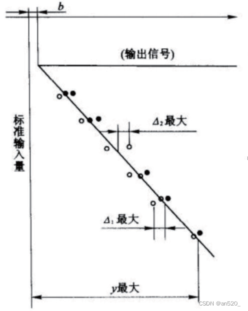 因为本测量系统涉及多个传感器同时工作,遂即采用单独定标法。由于传感器的设计不同,零件的加工存在误差,以及装配调整状态不完全相同的因素,校准后每个传感器的灵敏度不一致。但是,从用户使用的角度来看,希望同一型号的产品应具有相同的灵敏度,输入阻抗和其他技术参数,并且初始零输出应尽可能细微,从而最大限度地减少在使用中调整系统的工作量,最大限度地提高测量精度。传感器输入和输出之间的工作特性与非线性,滞后和非重复性问题有关。与线性传感器相比,最好的解决方案是在每个传感器测得的实际标准曲线中拟合一条直线,并且每个最大偏差曲线与直线的偏差将最小。例如,具有相同特性的传感器具有最高的精度。校准线可以用线性方程y = kx + B表示,因为方程中的B 是传感器输出零的初始值,k 是传感器输出的灵敏度斜率。其中,x 和y 是来自传感器的实验( 校准)数据,因此通常使用平均斜率法或最小二乘法来处理并获得直线。如图7 为最小二乘法拟合曲线图。