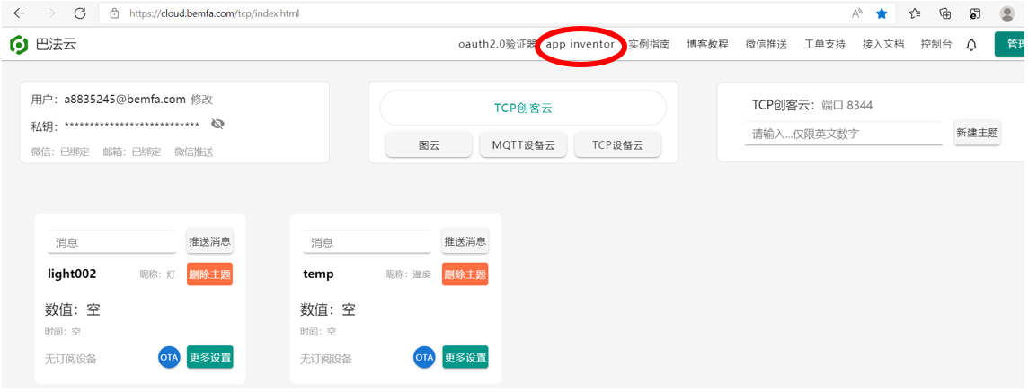 然后如何让这个app联网呢,这就是另一个"法宝" 巴法云平台了。