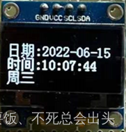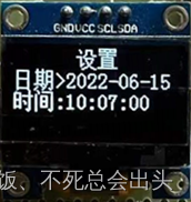 OLED屏显示:本项目额外开发显示功能,屏幕具有两种显示:其一显示万年历,其二显示外设的工作状态,两种显示使用按键K0切换。
