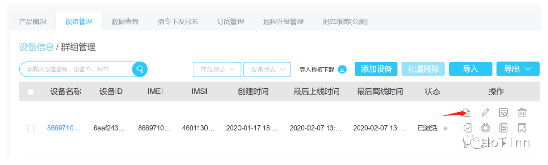 3、设备添加,进入创建好的产品,点击“添加设备”