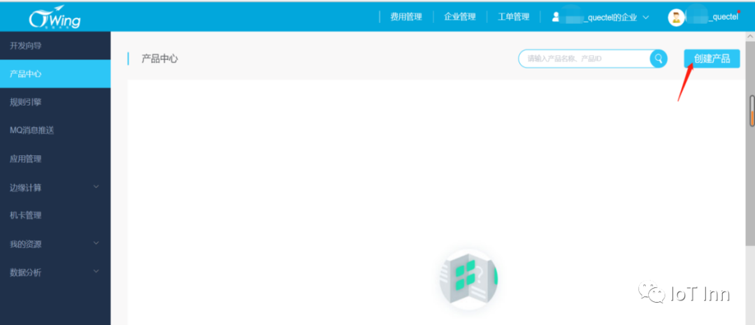 1、登录CTWing 中国电信物联网开放平台(https://www.ctwing.cn)(即AEP 平台),在控制台内选择“产品中心”,随后点击“创建产品”,新建一款产品。
