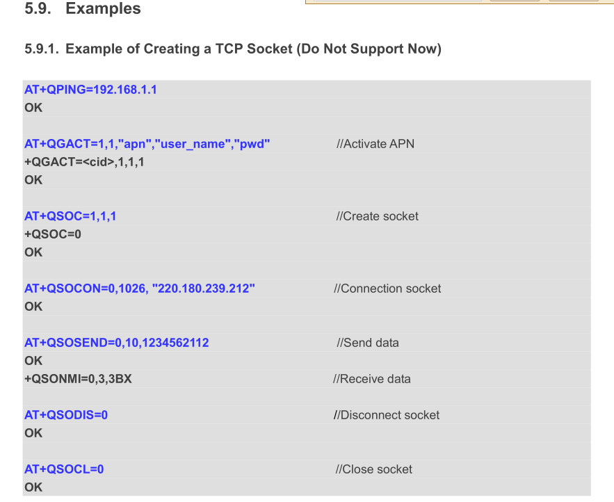 按照文档的说法要先配置一个APN,然后创建一个socket 套接字,返回一个socketid,然后connect然后send,但是按文档操作的话