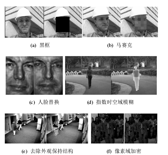 这类保护方法在像素域数据上对隐私区域进行保护,视频在传输给编码器进行压缩编码之前需要保护的信息已经被去除。由于其简单和直观性,这类方法在早期的视频隐私保护中广泛使用。使用这种方法保护的视频,隐私区域的数据通常不可恢复的。主要方法有: