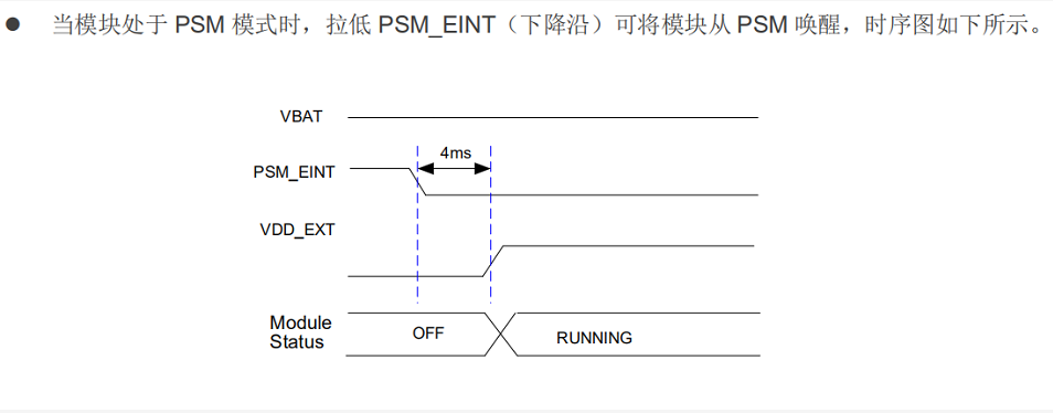 三、PSM模式,BC20唤醒模式,从时序图可以看出过了4ms,后拉低即可。