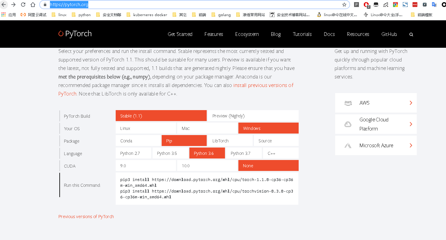 pytorch官网:https://pytorch.org/