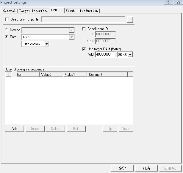 find Item0, set Action from Reset to Halt 或者 直接将Use following init sequence中的选项清空 ,否则会出现ERROR: PC of target system has unexpected value after blank checking.的错误提示,再或者直接下载一个mini2440-SST39VF1601的配置文件导入即可。