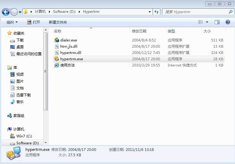 2.win7下的超级终端:win7是没有超级终端的,可以把xp上的超级终端拿到win7下来运行