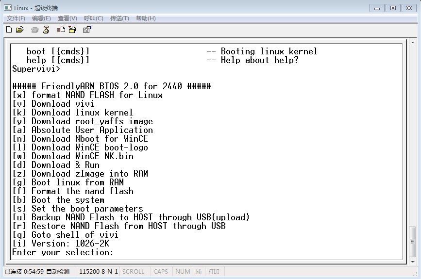 1. J-link ARm v4.28b软件清空flash和烧录supervivi:手上的2440开发板是256M nandflash 所以要使用supervivi-128M版本(我用的友善官网提供的1026最新版,要把后缀名修改成.bin,国嵌的版本我使用后一直提示nandflash found),据说这个版本会兼容128M-1G的nand,清除nand时,要把