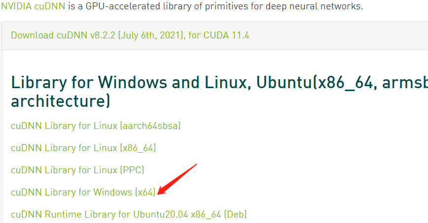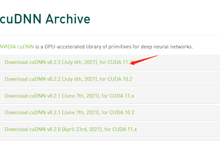 然后在这里找到与cuda版本对应的cudnn下载 ,如下图