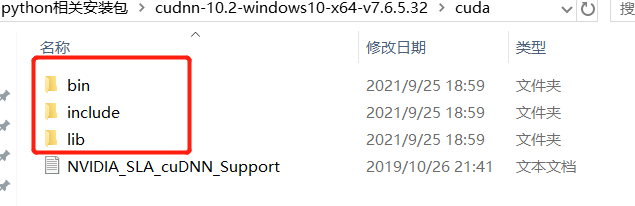 cuda安装成功之后,解压下载的cudnn,将cudnn文件夹里面的这三个文件复制到cuda的安装目录里面,就可以了