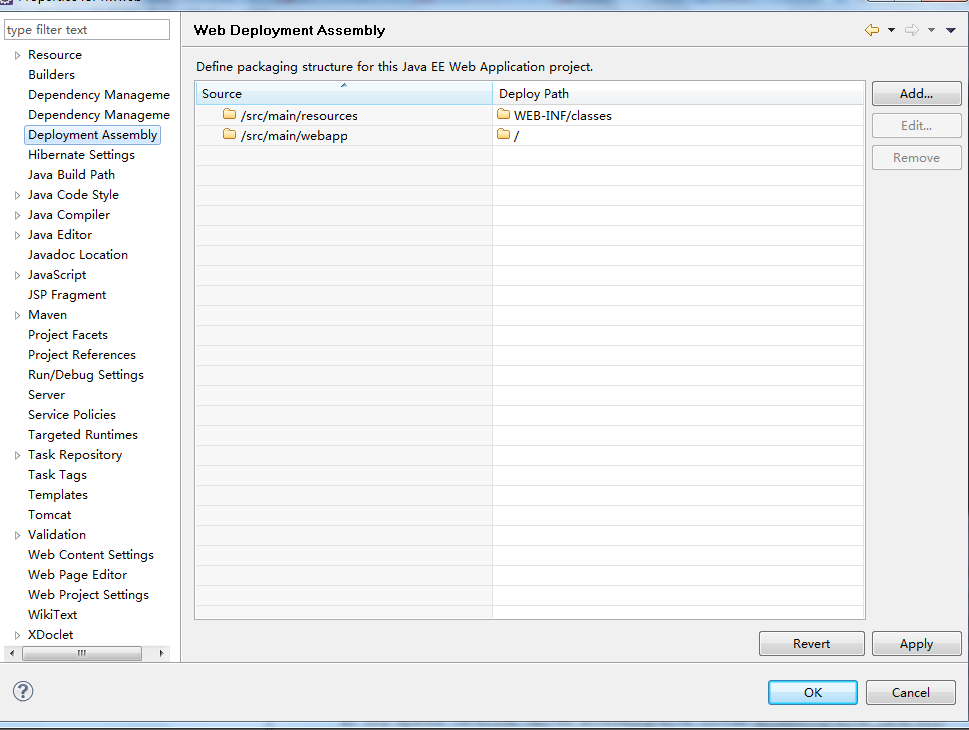 继续在项目上点击右键 ,选择properties,在其中选择Deployment Assemble选项