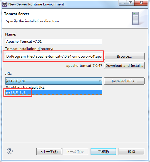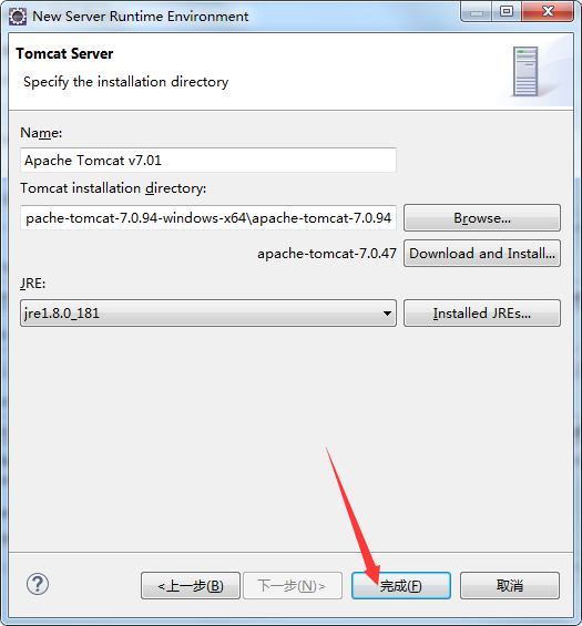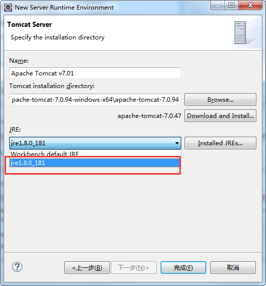 然后第一个选项就自动补齐了,JRE选择一个本机安装的版本即可
