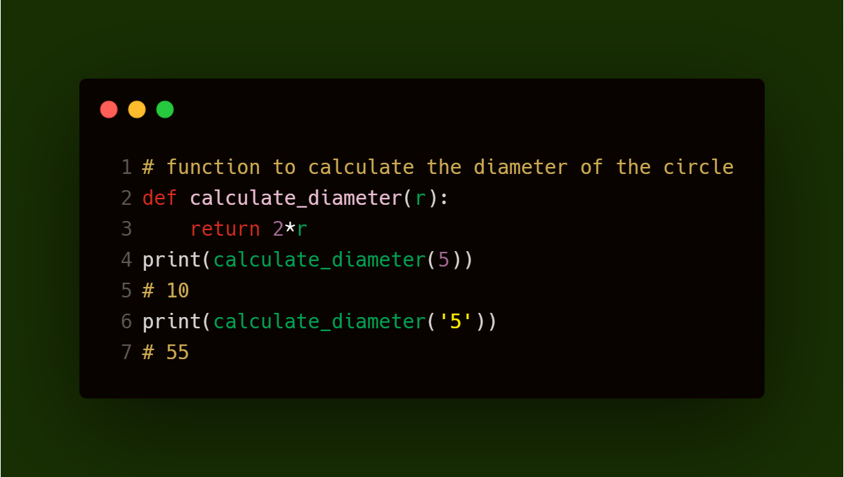 在这种情况下,传递给函数的值的类型非常重要。虽然代码中没有错误,但是传递一个字符串会将同一个字符串重复两次。