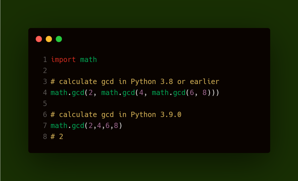 对现有的数学函数进行了修改。在早期版本中,计算GCD的函数只接受两个数字。但现在,它可以应用于任何数量的值。