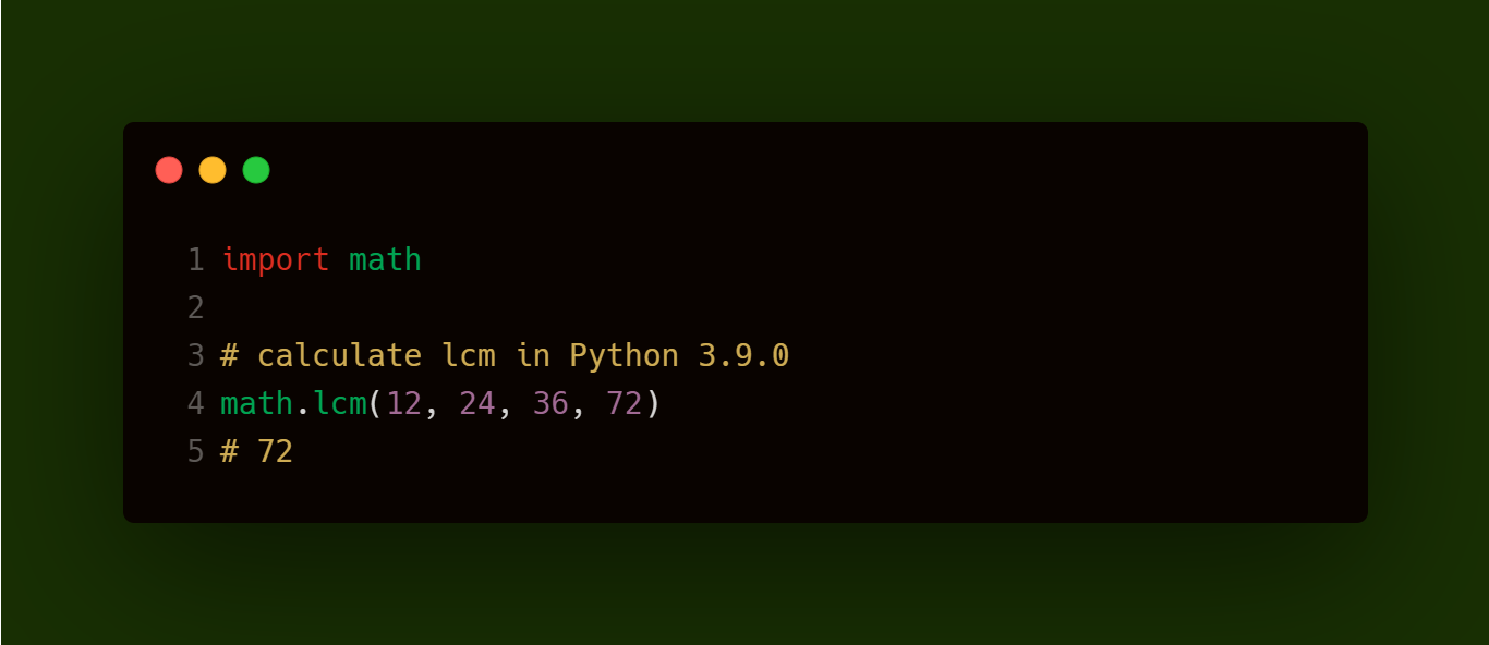 数学模块中添加了一个新函数来计算LCM。与GCD函数一样,LCM函数也接受任意数量的值。