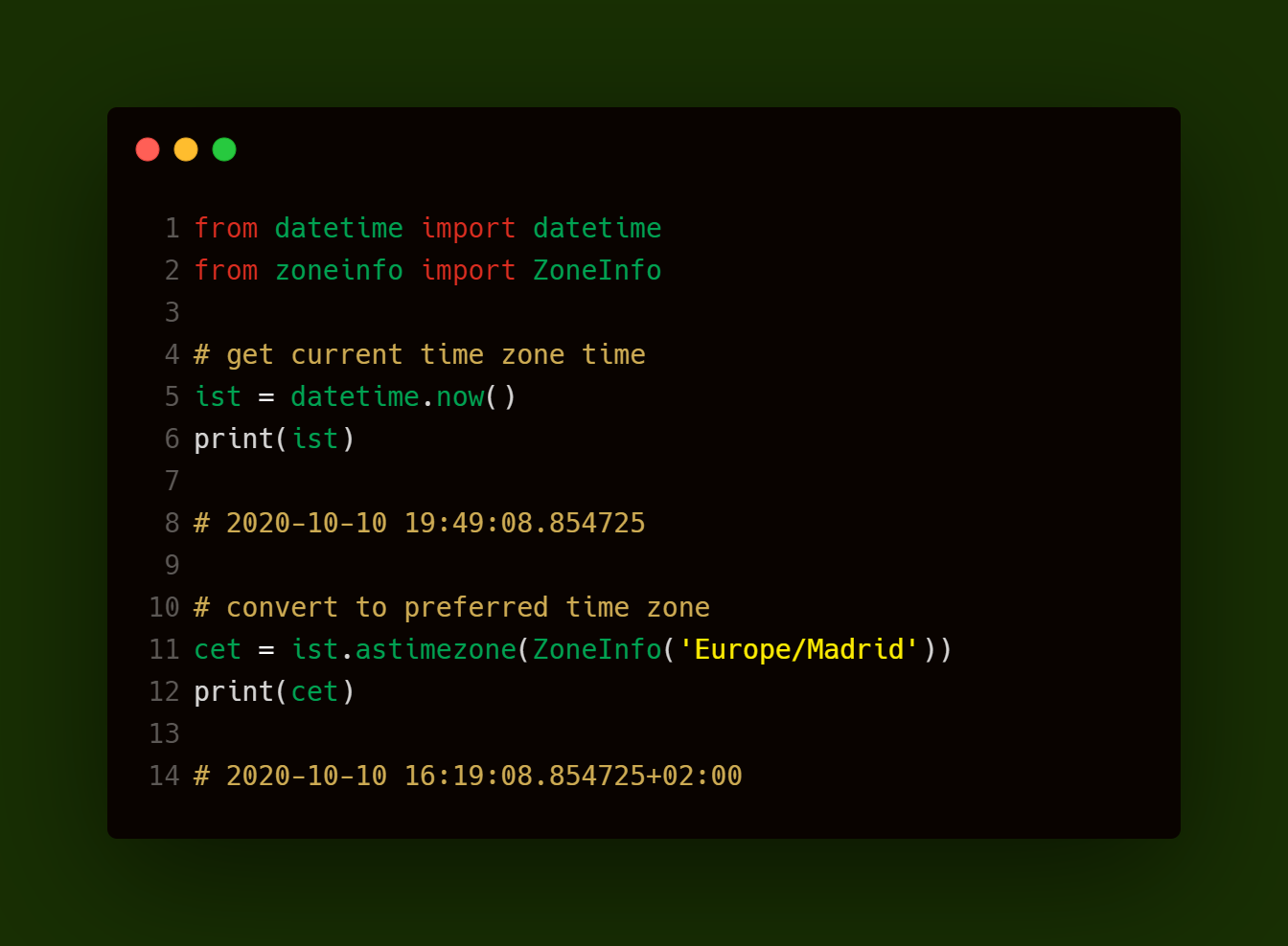 考虑一个将印度标准时间转换为德里当前时间的示例。在3.9之前,我们会通过pip安装pytz,