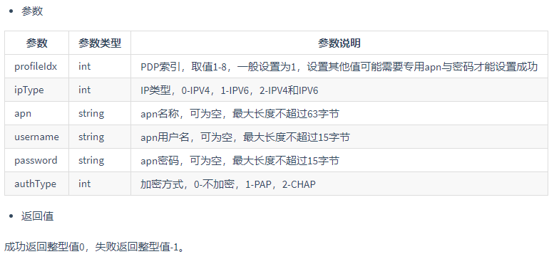 dataCall.start(profileIdx, ipType, apn, username, password, authType)