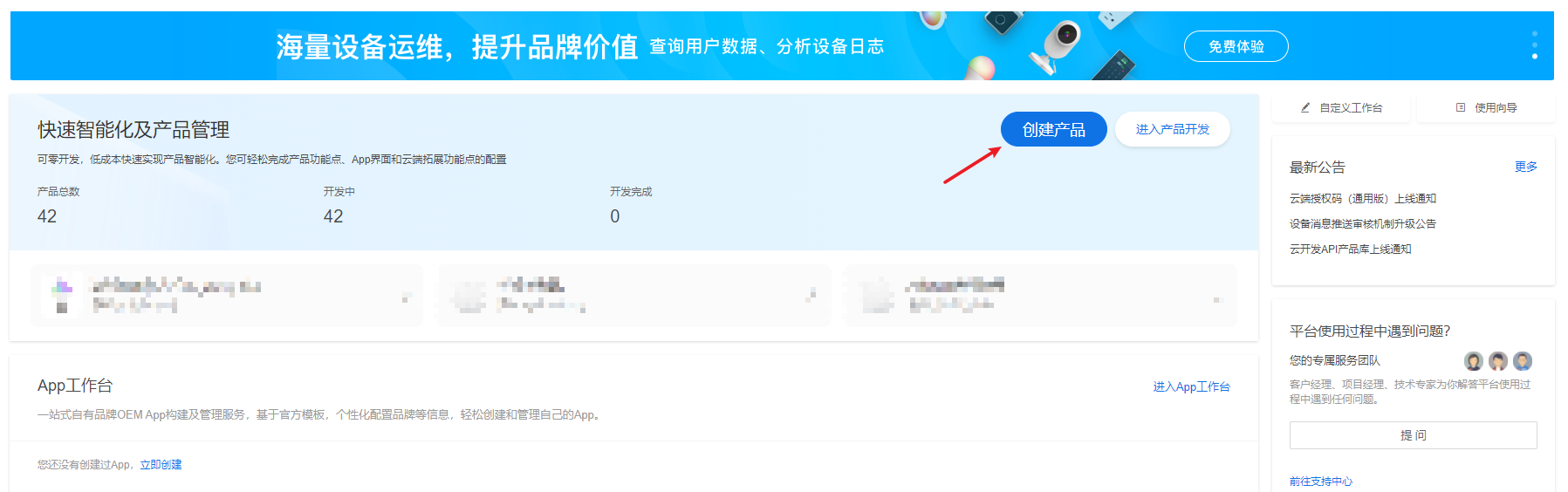 1.点击箭头指向的“创建产品”按钮,开始创建产品。
