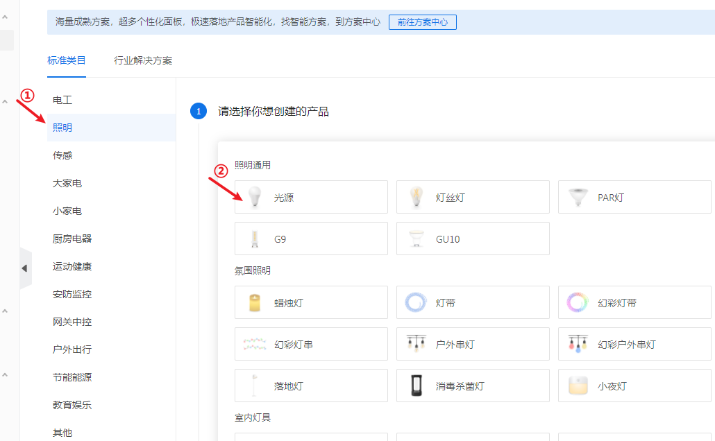 2.标准类目选择“照明”,选择“光源”。