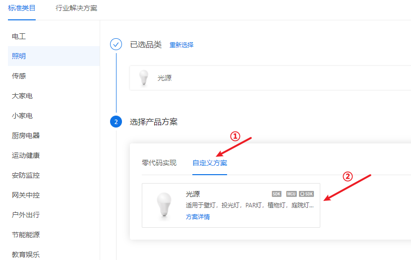 这里我们是对涂鸦模组进行二次开发,所以选择“自定义方案”。