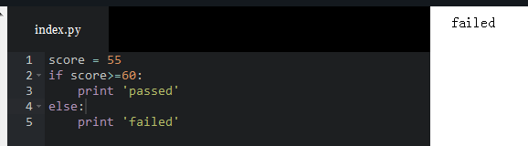假设Bart同学的分数是55,请用if语句打印出 passed 或者 failed: