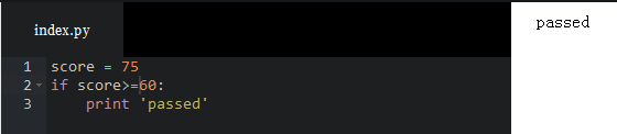 >>> age = 20 >>> if age >= 18: ... print 'your age is', age ... print 'adult' ... your age is 20 adult