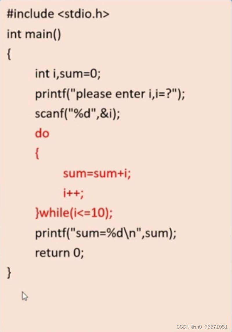 结论:当while后面的表达式的第一次的值为“真”时,两种循环得到的结果相同;否则结果不相同(之二者具有相同的循环体情况)。