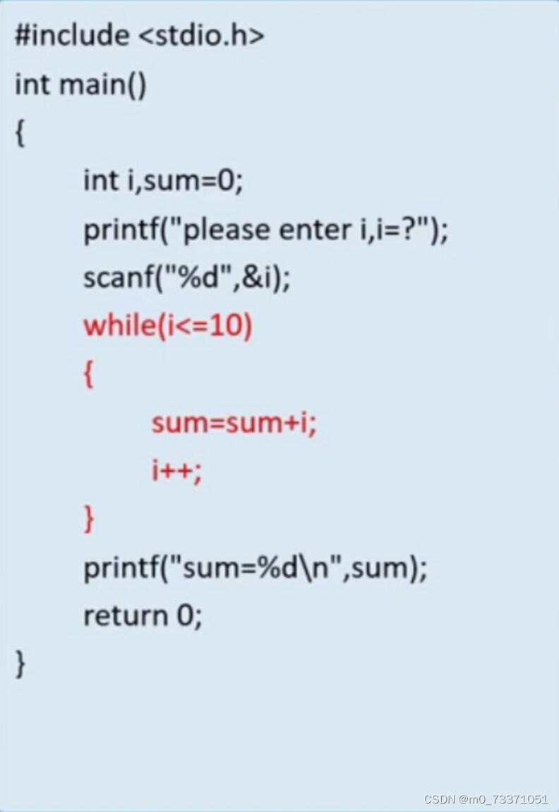2.“语句”就是循环体。循环体可以是一个简单的语句,可以是复合语句(用花括号括起来的若干语句)。