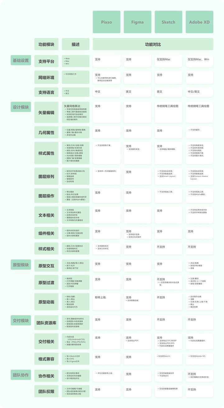 以下是 Pixso 与其它设计工具的对比图,更加清晰直观(图源: 03.Pixso官网 - 新一代UI设计工具,替代Sketch,Figma,支持在线实时协作)