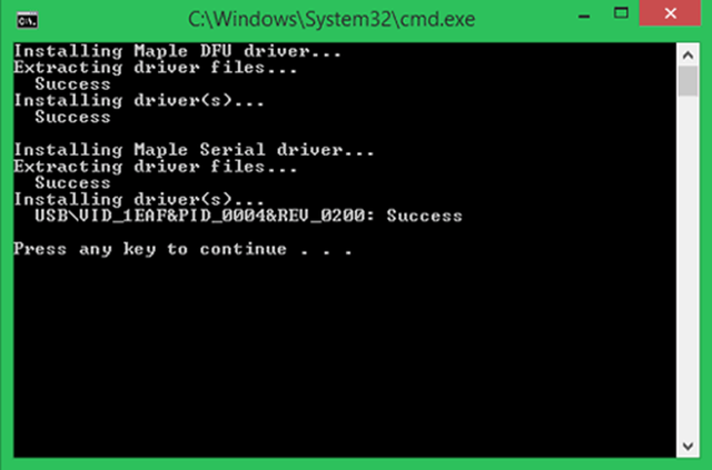 第 4 步: 单击两个 bat 文件并安装驱动程序。您将看到如下所示的 DOS 屏幕。