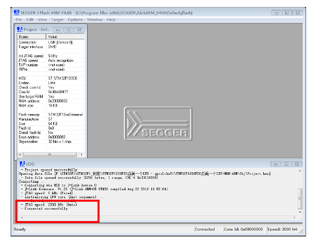 第二步:Targect-->Connect链接JLINK ,LOG栏中会有连接状态显示