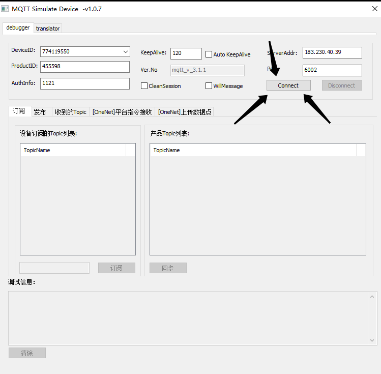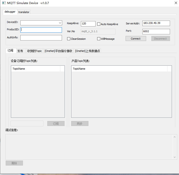 功能包括:数据上传、数据下发、Topic订阅和发布