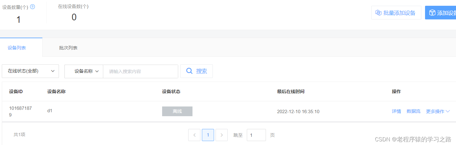 添加商品后,点击新添加的商品 —>点击左侧“设备列表” —>“添加设备” 。