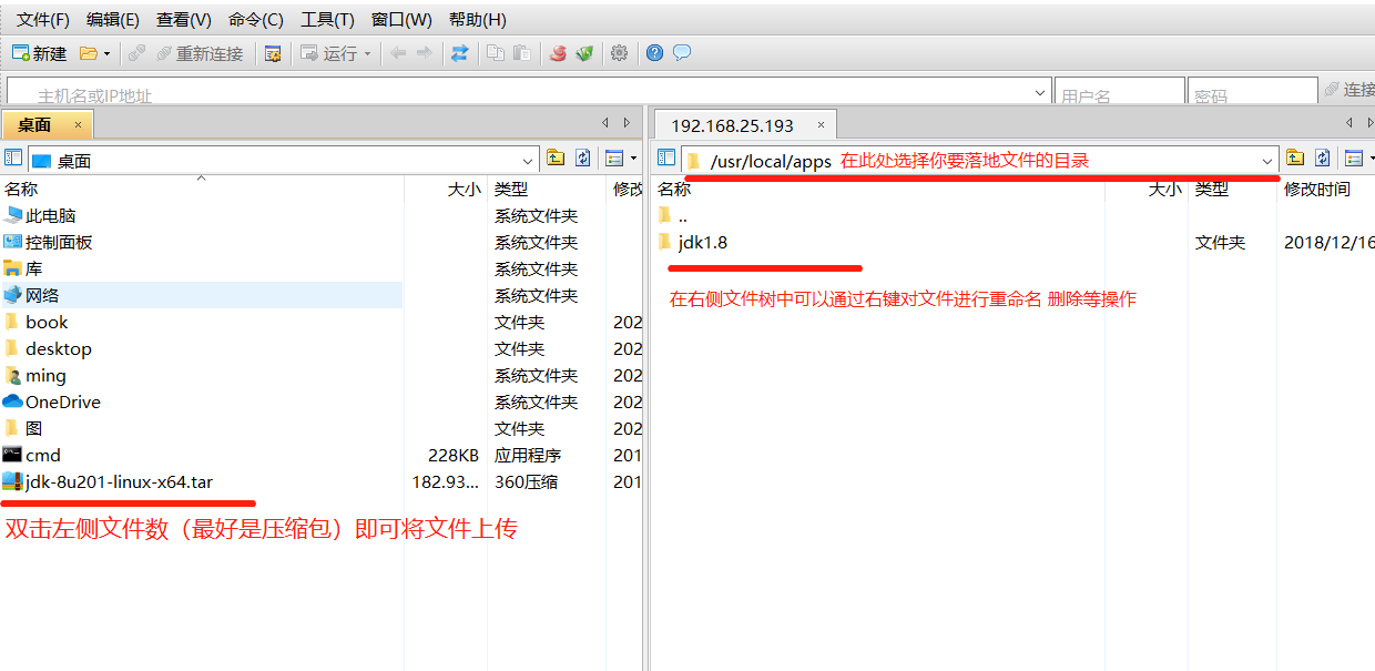 ① 将Jdk压缩包上传到指定目录 (我的习惯是在/usr/local/ 下创建一个apps文件夹 把所有软件都放在这里)