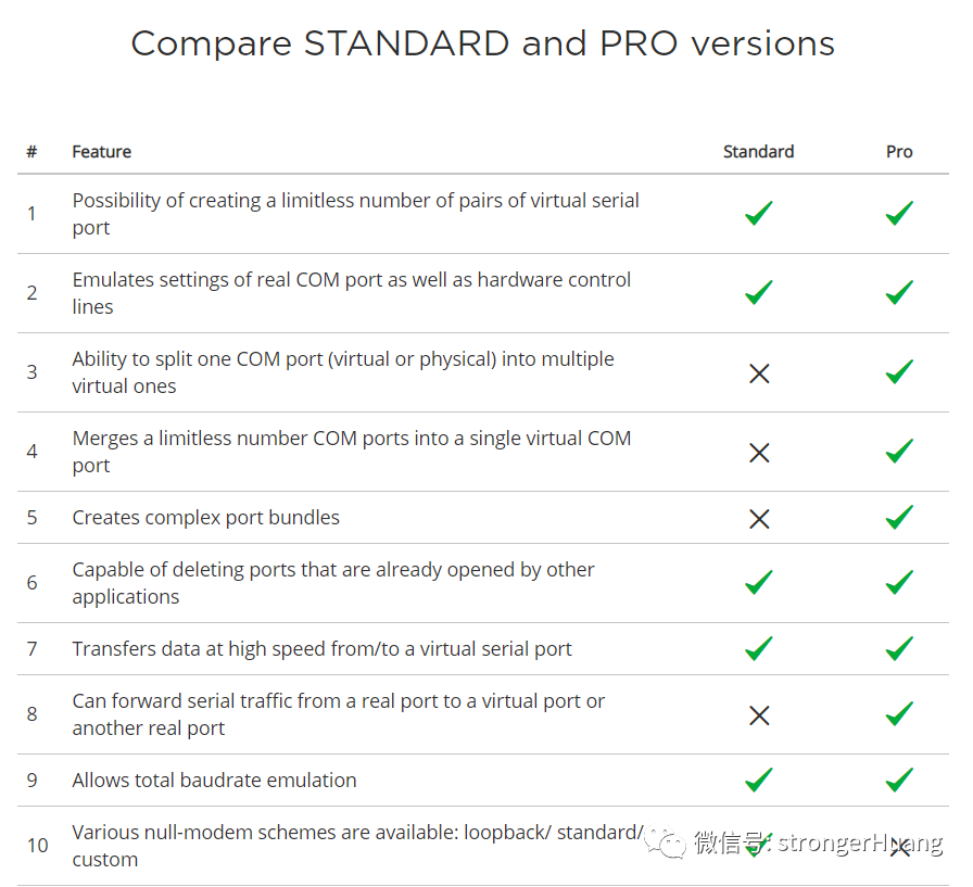 相比它功能更强大的就是Virtual Serial Port Driver PRO,差异如下: