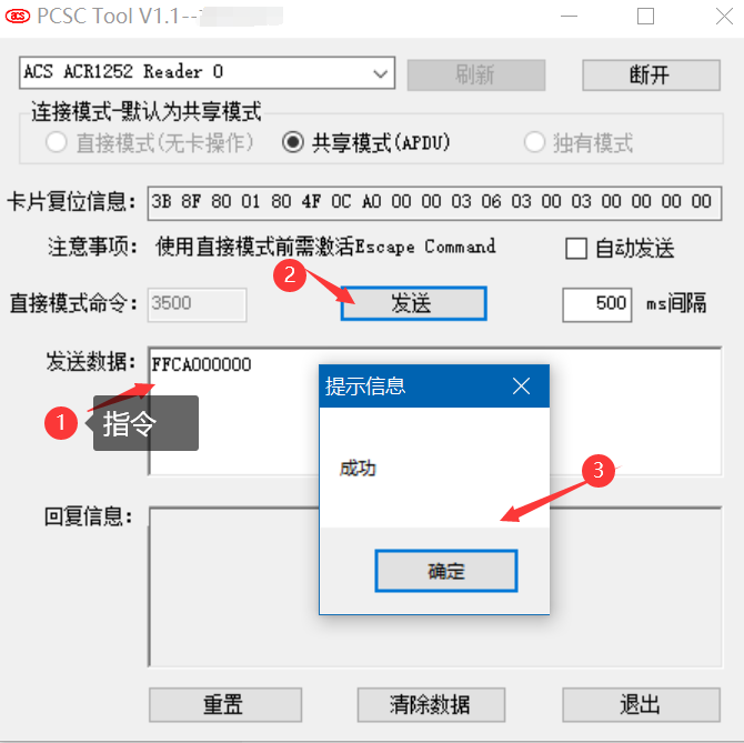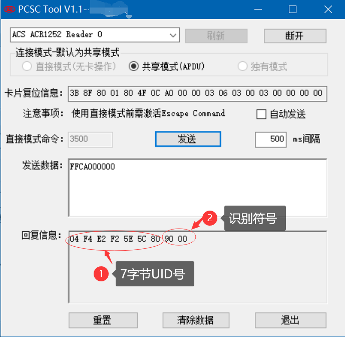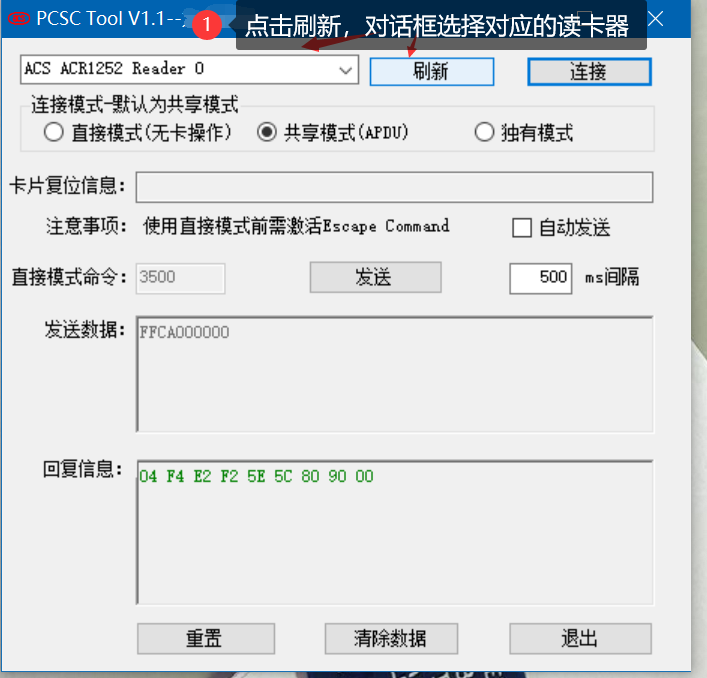 以上就是高挑金针菇最近收集整理的关于ACR122U-A9|ACR1251|ACM1252系列NFC读写器读卡器PCSC Tool测试工具使用步骤说明的全部内容,更多相关ACR122U-A9|ACR1251|ACM1252系列NFC读写器读卡器PCSC内容请搜索靠谱客的其他文章。