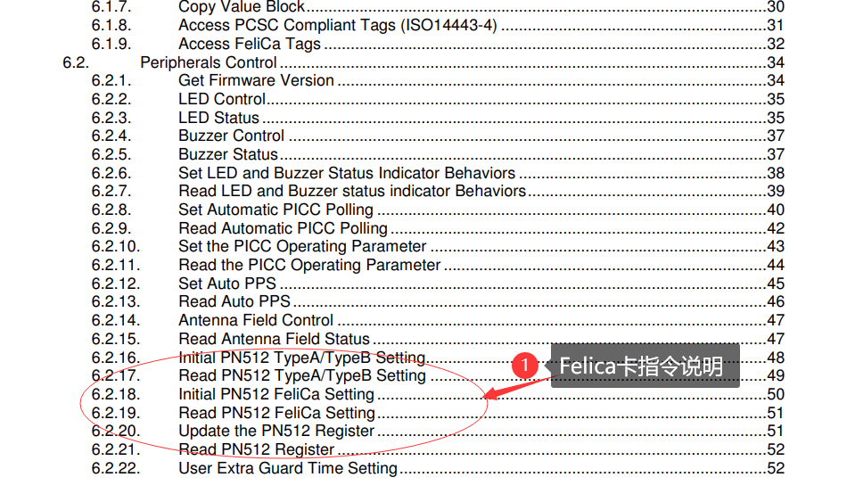 关于felica卡的详细指令,请查阅API文件说明“API-ACR1251U-CN-1.07”,如图: