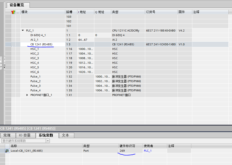 PORT:269是表示CB1241(RS485)硬件标识符,要对应自己用的PLC