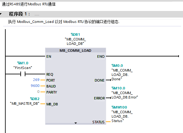 2、执行Modbus_Comm_Load以对ModbusRTU协议的端口进行组态。