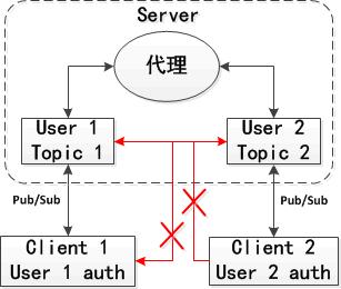 最主要的数据存储功能还没有实现,上述获取的数据也是单个用户订阅自己的某个topic获取的,单个用户是无法订阅或发布其他用户topic上的数据的,这个模型有点像下图的描述。