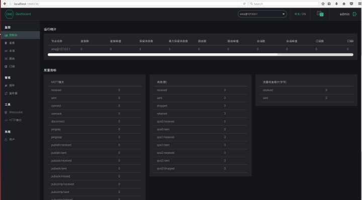 emqttd是一款国人做的(号称)支持百万连接的高并发MQTT开源代理,除了MQTT还支持CoAP, WebSocket等。产品做得非常赞,自带管理控制界面(如下所示,酷炫的不行)。