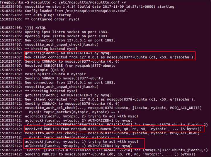 mosquitto_sub -t "mytopic" -u jiaozhu -P 12345