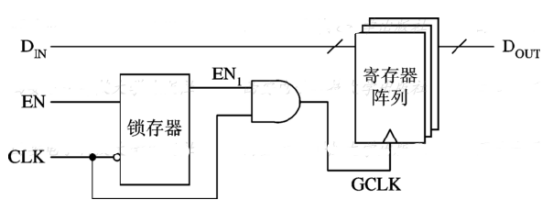 门控时钟可以以三种方式实现:一个与门(即不带锁存的门控时钟)、分散的锁存器+与门、集成的锁存器+与门。在综合库中,与门、锁存器是基本逻辑单元,因此可以构成门控时钟。此外,综合库中还专门提供了集成的门控单元。一般情况下,我们使用的是集成的门控单元,因为这个门控单元是对Skew作了控制,不存在前面描述的毛刺问题。