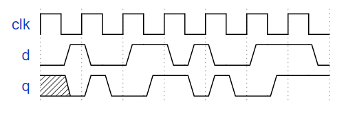 接着,在下降沿的时候,q_d2变成了d ^ q_d1,那么q = q_d1 ^ q_d2 = q_d1 ^ d ^ q_d1 = d;