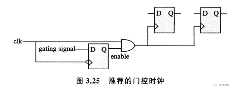 (2)一般情况下,门控时钟只需要一个与门,但是如果有附加的组合逻辑,输出信号将会有毛刺。