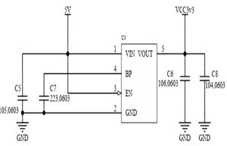 由于单片机和串口均为低功耗器件,其工作电压为3.3V,将接口的5V电源经过一对电容滤波后发送到AMS117-3.3芯片上进行电压稳定,稳压之后同理经过一......如图3-4所示。