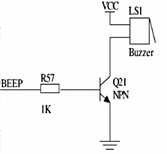 报警模块在硬件连接上也十分简单,STM32驱动一个蜂鸣器加上其外围电路构成。......如图3-7所示。